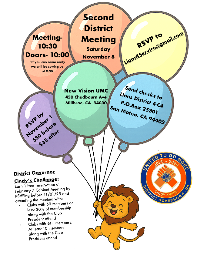 Posted inDistrict Communications Don’t Wait – RSVP Today Posted by By District 4-C4 Communications Committee October 16, 2025 Don't Wait – RSVP Today Lions District 4-C4 | (415) 545-8107 P.O. Box 25301 | San Mateo, CA 94402 US Unsubscribe | Update Profile | Constant Contact Data Notice District 4-C4 Communications Committee View All Posts Post navigation Previous Post The Thread: 10/12/25Next PostThe Thread: 10/19/25